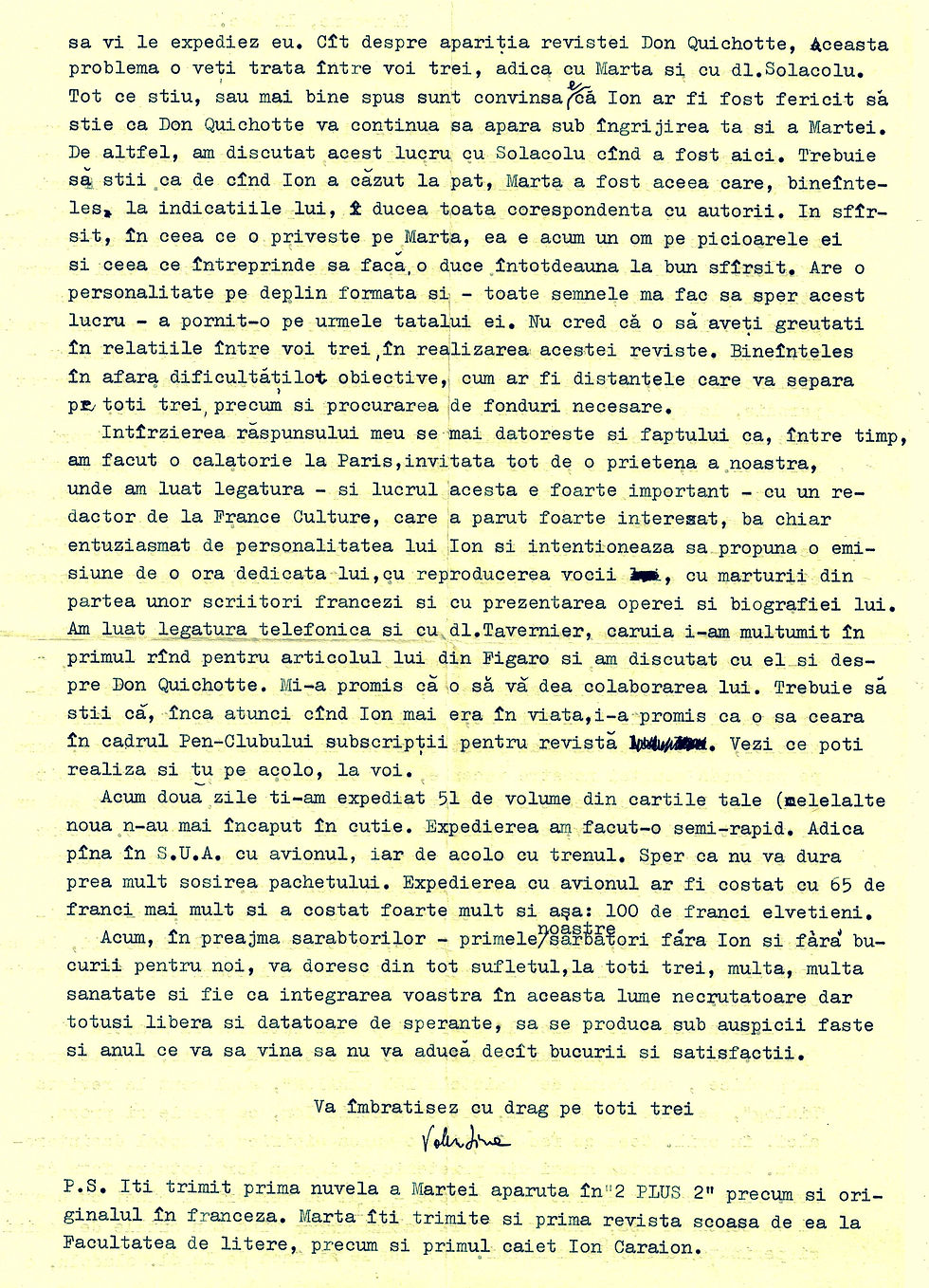 Îi mulțumesc Martei Caraion pentru acordul de a publica scrisoarea.